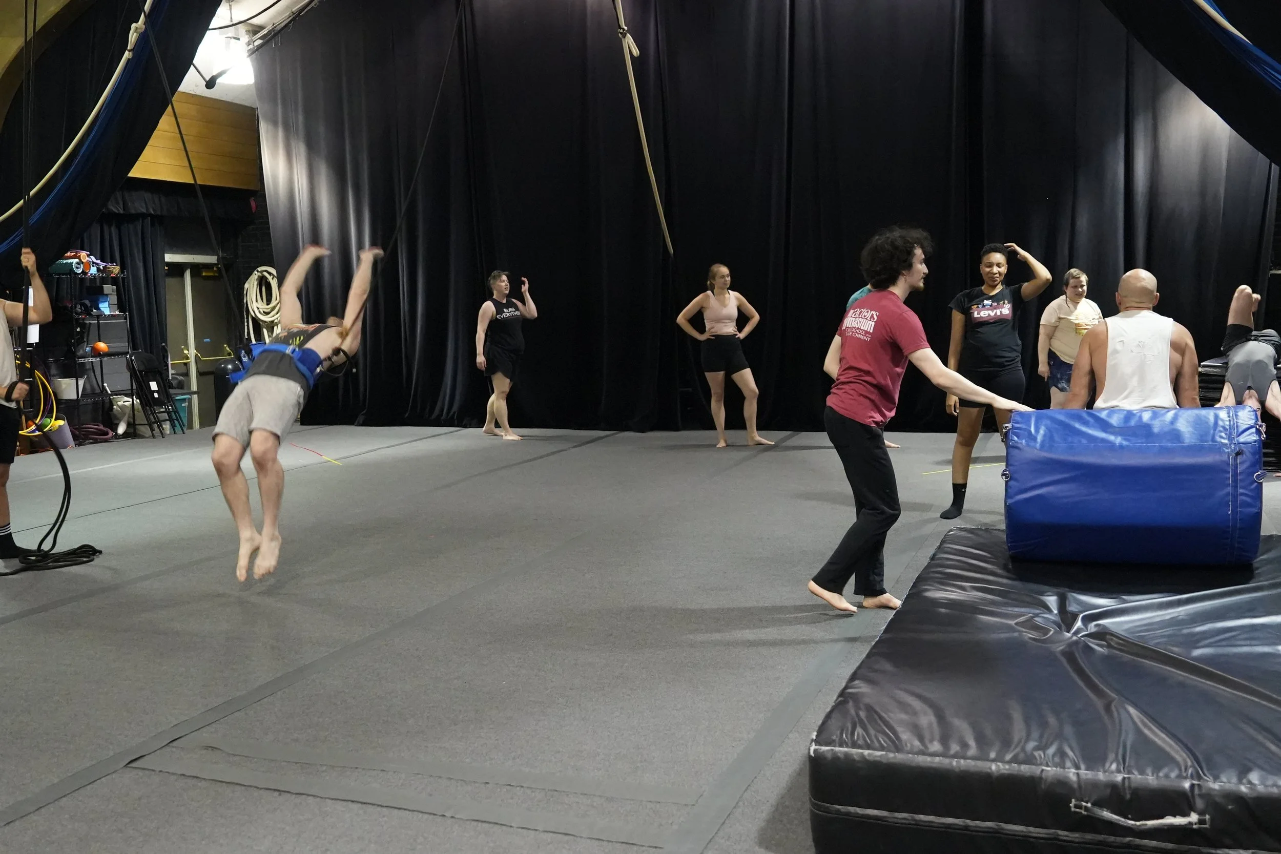 Mondays 7:15-8:30pmExperience all things circus in our Circus Arts classes! Each week includes training in the foundations of tumbling, ground skills, and aerial skills. This class is perfect for those interested in training strength, flexibility, and balance across a wide variety of skills: handstands, tumbling, juggling, aerial skills, and more.