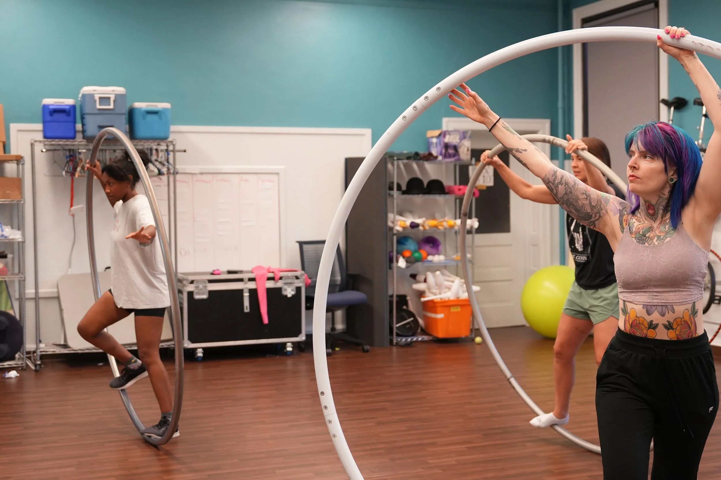 Thursdays 6:30pm - 8:00pmIn Level 1, we’ll learn the foundations of this mesmerizing apparatus beginning with wheel manipulations, body mechanics, and learning to waltz.