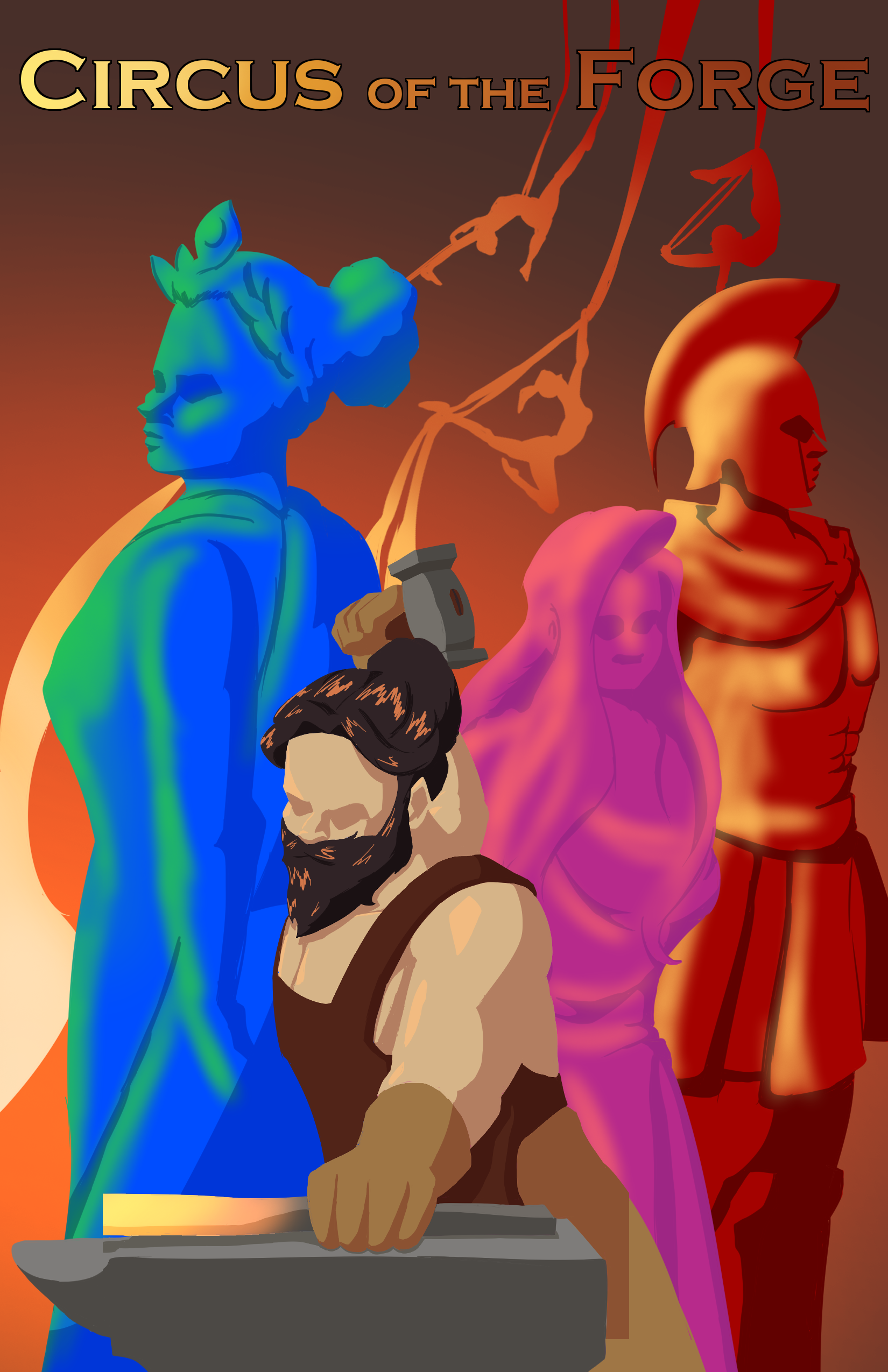 3pmInspired by Greek mythology, Circus of the Forge tells the story of the God of the Forge, who is thrown out of the Heavens and makes a Volcano his home. He builds a forge there and creates beautiful things which catch the eyes of the Gods who abandoned him so long ago.
